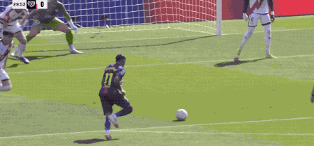 比赛第13分钟,巴萨取得虚幻契机。拉菲尼亚中场断球后无所畏惧酿成单刀,可惜他的推射稍许偏出远角,错失绝佳破门时机。这一脚射门,真是成为比赛走势的缩影,巴萨契机许多,但成果并不高。