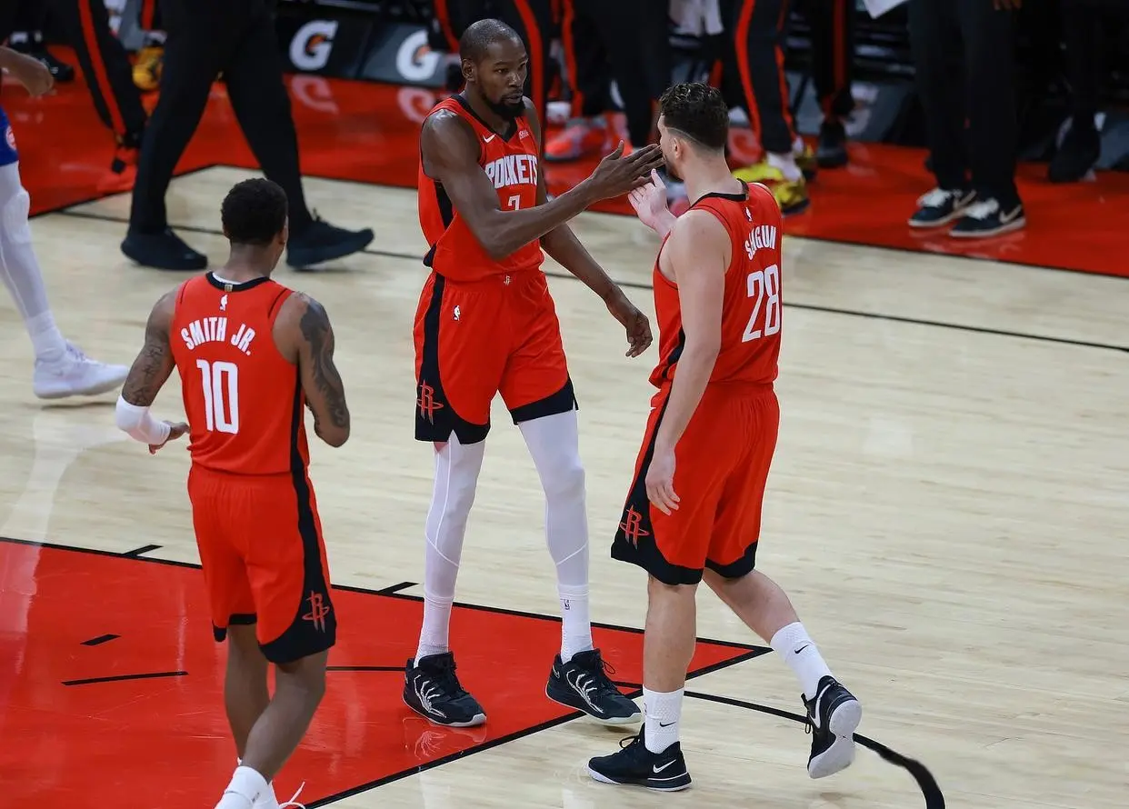 雅博体育app 2场轰9记三分+18助攻! 火箭短板变上风,季后赛稳了? 杜兰特受益