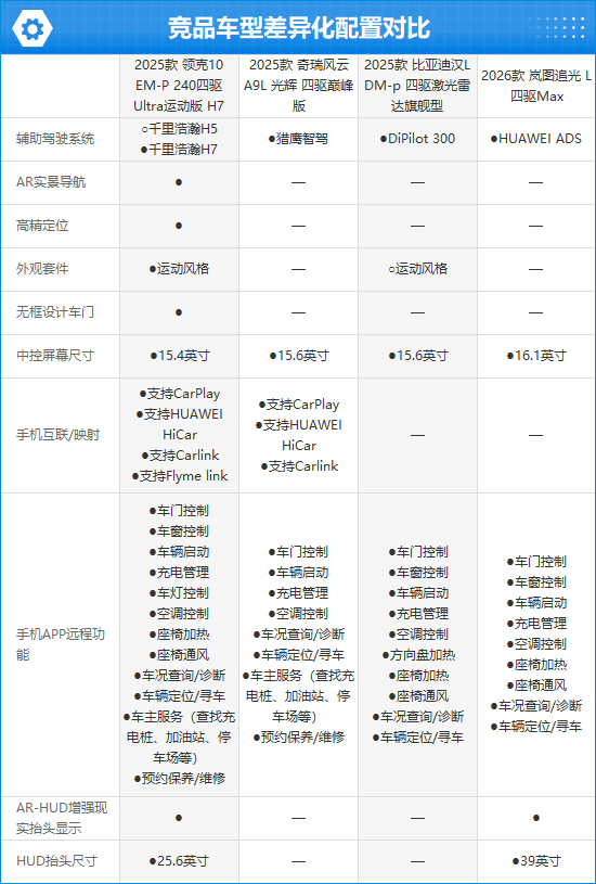 2、竞品车型建设参数对比:强调通顺定位,智能化推崇相对卓越