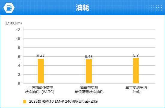 通过汇集工信部文书信息、各大汽车垂直媒体测试和车主实测的数据来看,2025款领克10 EM-P 240四驱Ultra通顺版官方公布的WLTC工况最低荷电景色油耗为5.47L/100km,懂车帝实测最低荷电景色油耗为5.43L/100km,车主实测平均油耗为5.7L/100km(数据仅供参考)。