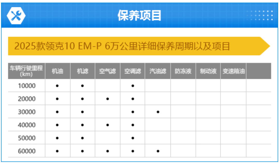 2025款领克10 EM-P的整车质保期为五年或10万公里(以先到为准)。改动方面,全系车型需要在10000公里或12个月时进行首保,改动形态为更换机油、机滤和空调滤芯,尔后每10000公里需要更换一次。空气滤芯每20000公里更换一次;汽油滤芯每30000公里更换一次。此外,变速箱油每80000公里或48个月更换一次,制动液每24个月更换一次,防冻液每48个月更换一次。在“百名车主评新车”造访中,对于2025款领克10 EM-P使用资本的评价,暗示“相等温和”和“温和”的车主占比分辩为24.3%和50.5%,另有19.4%的车主暗示“一般”,觉得“不温和”的车主占比仅为5.8%。