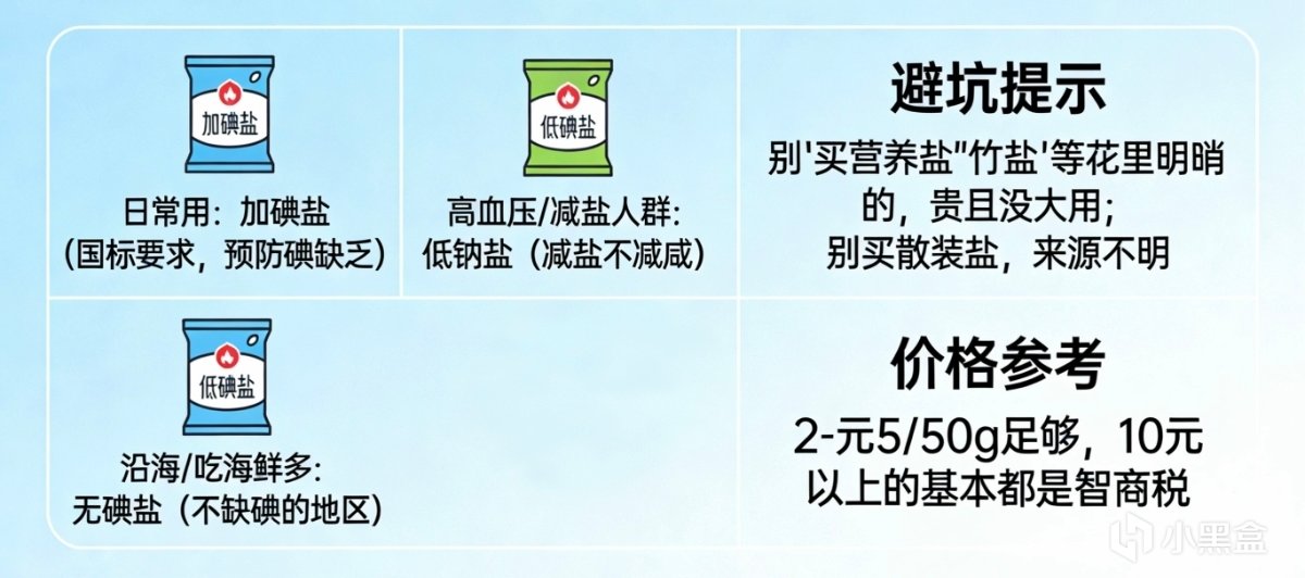 沿海/吃海鲜多:无碘盐(不缺碘的地区)