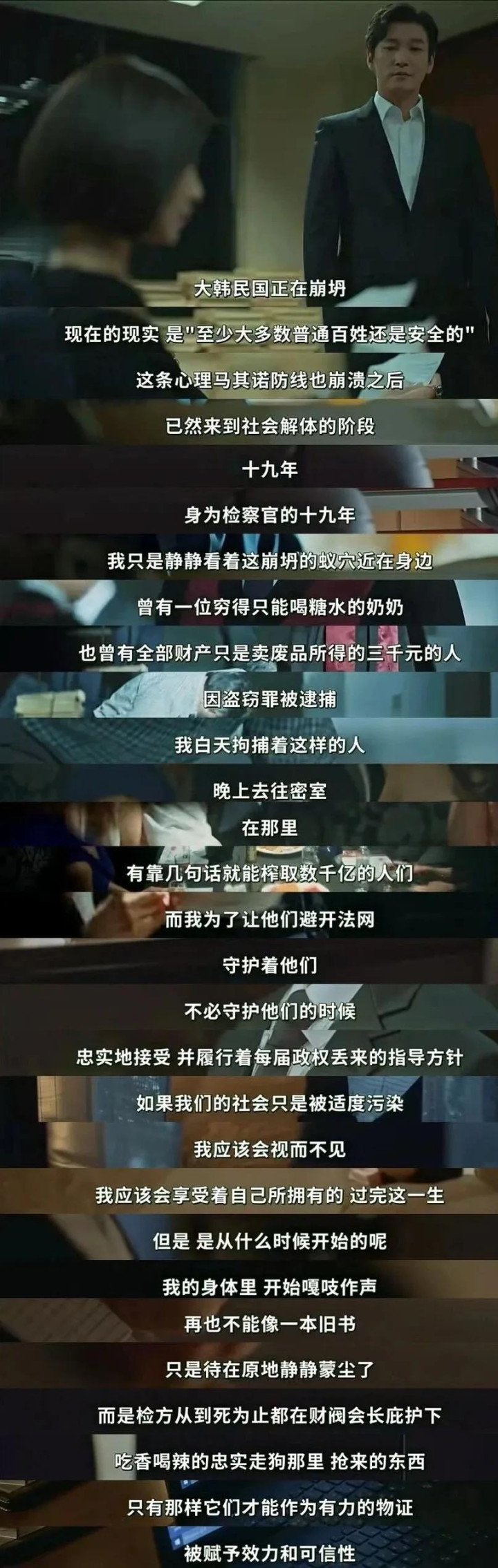 开篇便揭露了检讨系统的贪恋,纳贿检讨官与财阀串通,逼死无辜庶民,正义在权柄眼前一文不值,长大后繁华成为检讨官,成为东说念主上东说念主,恶果即便业务才智顶尖,也难以踏进权柄中枢,因为检讨系统的大门,从来只为显然子弟掀开。