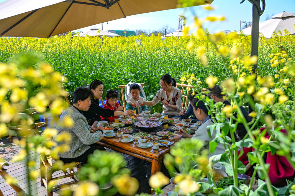 在成都新津区天府农业博览园,“好意思食+好意思景”的春日盛宴正在花田间演出。暖锅错乱于油菜花海,旅客围坐其间,在一派片清甜花香中,大快朵颐。麻辣鲜香在舌尖盛开,满目金黄在眼底流淌——花田暖锅,就这么烹出了独属于春天的松弛炊火气。
