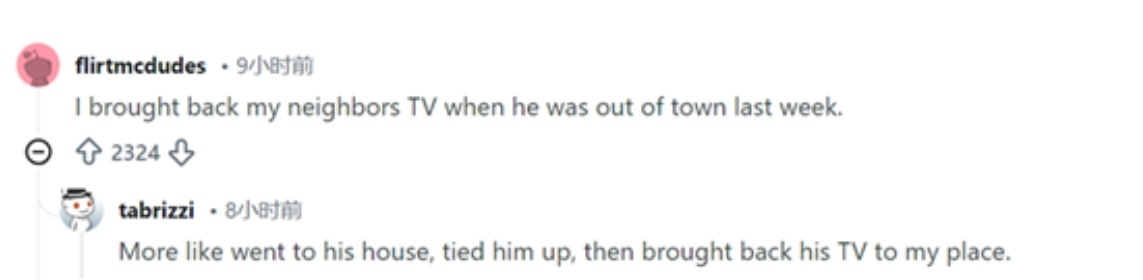 更有网友刻画,这就像“上周邻居出门的时候,我把他家电视搬总结了。”有网友复兴,应该“更像是去了他家,把他绑起来,然后把他家电视搬回了我家。” ↓