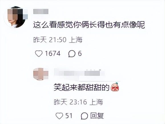 两东谈主的发型险些对称,脸型和笑起来的弧度高度相似,不少东谈主留言说不仔细看还觉得是双胞胎姐妹。