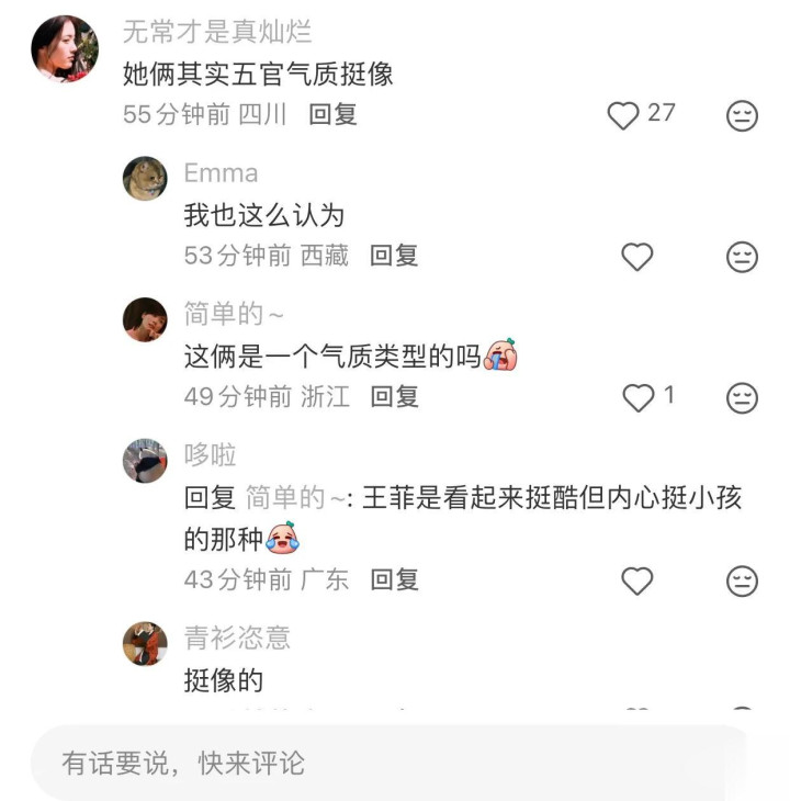 网友看了以后纷纷留言,两大女神同框确切是繁难一见的名场合,王菲跟俞飞鸿差一岁,两个东说念主皆是不老女神,许多网友说王菲跟俞飞鸿长的很像,你合计像吗?